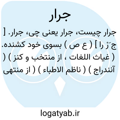 جرار. [ ج َرْ را ] ( ع ص ) بسوی خود کشنده. ( غیاث اللغات، از منتخب و کنز ) ( آنندراج ) ( ناظم الاطباء ) ( از منتهی الارب ). مبالغه جار. ( از اقرب الموارد ). کشنده بغایت. ( از شرفنامه منیری ). کشنده. ( یادداشت مؤلف ). و بهمین معنی است: «جرار اذیال المعالی والقنا». ( از اقرب الموارد ). || در عربی اخذکننده و گیرنده را گویند. ( برهان ). || لشکر بسیار و انبوه که ازبسیاری مردم آهسته روند. ( غیاث اللغات ). لشکری باشدآراسته از بسیاری. ( برهان ). لشکر گران رو از جهت کثرت و انبوهی. ( ناظم الاطباء ) ( آنندراج ). لشکری که در انبوهی آهسته رود. ( از شرفنامه منیری ). بهمین معنی است: جیش جرار؛ لشکر گران رو بجهت کثرت. ( از منتهی الارب ). لشکر بسیار. و گویند لشکری است که از بسیاری کندرود. ( از اقرب الموارد ) ( ناظم الاطباء ):