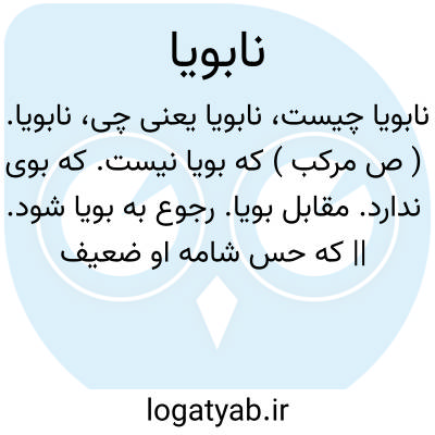 نابویا. ( ص مرکب ) که بویا نیست. که بوی ندارد. مقابل بویا. رجوع به بویا شود. || که حس شامه او ضعیف است. که حس بویائی ندارد.