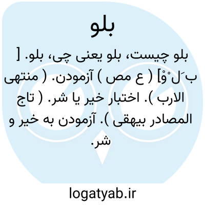 بلو. [ ب َل ْوْ] ( ع مص ) آزمودن. ( منتهی الارب ). اختبار خیر یا شر. ( تاج المصادر بیهقی ). آزمودن به خیر و شر. ( دهار ). آزمودن و اختبار کردن. ( از اقرب الموارد ). بَلاء. و رجوع به بلاء شود. || دریافت حقیقت و کشف آن نمودن. ( از منتهی الارب ). بَلاء. و رجوع به بلاء شود.