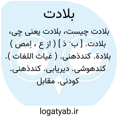 بلادت. [ ب َ دَ ] ( از ع، اِمص ) بلادة. کندذهنی. ( غیاث اللغات ). کندهوشی. دیریابی. کندذهنی. کودنی. مقابل ذکاء و فطنت. ( فرهنگ فارسی معین ). کندی. کورذهنی. سستی خاطر. غباوت. کاهلی. کندی در علوم و امثال آن: بلادت حیاء او به ذلاقت فصاحت متحلی شده.( ترجمه تاریخ یمینی ص 362 ). و رجوع به بلادة شود.