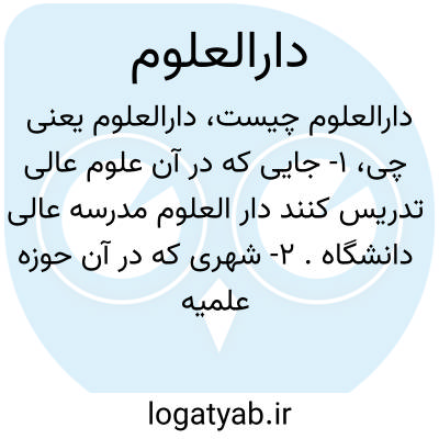 ۱- جایی که در آن علوم عالی تدریس کنند دار العلوم مدرسه عالی دانشگاه. ۲- شهری که در آن حوزه علمیه دایر باشد ( مانند قم نجف اصفهان شیراز ) ۳- کتابخانه.