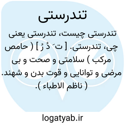 تندرستی. [ ت َ دُ رُ ] ( حامص مرکب ) سلامتی و صحت و بی مرضی و توانایی و قوت بدن و شهند. ( ناظم الاطباء ). از: تندرست + َی ( مصدری )... پهلوی تندرستی، سلامت. ( از حاشیه برهان چ معین ):