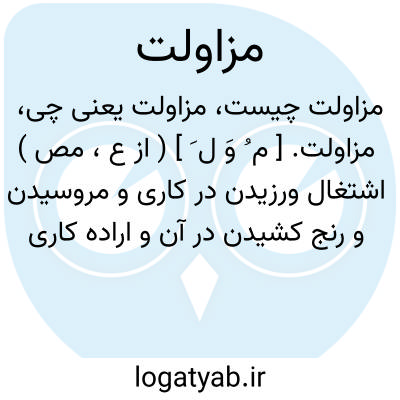 مزاولت. [ م ُ وَ ل َ ] ( از ع، مص ) اشتغال ورزیدن در کاری و مروسیدن و رنج کشیدن در آن و اراده کاری کردن. ( آنندراج ) ( ناظم الاطباء ). مزاولة. کوشش در چیزی و رسیدن به کار. ( ناظم الاطباء ). خو کردن به کاری. عادت کردن به چیزی. ( یادداشت به خط مرحوم دهخدا ): شرف مردی را بدان توان شناخت که از ملابست اعمال دون و مزاولت امور حقیره اجتناب نماید. ( یادداشت به خط مرحوم دهخدا منسوب به جالینوس ).