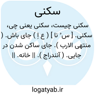 سکنی. [ س ُ نا ] ( ع اِ ) جای باش. ( منتهی الارب ). جای ساکن شدن در جایی. ( آنندراج ). || خانه. || باشش. ( منتهی الارب ) ( ناظم الاطباء ). || باشنده خانه. ( غیاث ) ( آنندراج ).