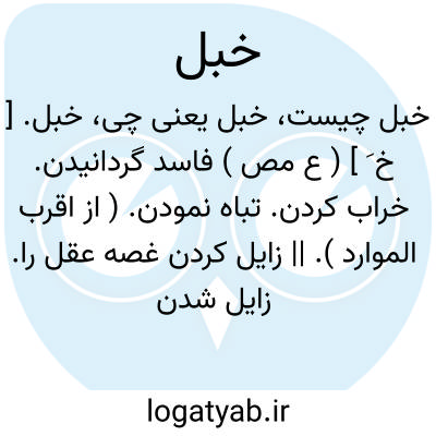 خبل. [ خ َ ب ِ ] ( ع ص ) دیوانه. مجنون. ( از اقرب الموارد ). || سخت و تنگ. منه: «دهرخبل »؛ روزگار سخت و پیچان بر مردم. ( از منتهی الارب ) ( از اقرب الموارد ).