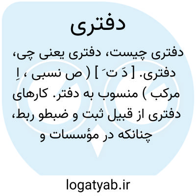 ( صفت ) ۱ - منسوب به دفتر: کارهای دفتری. ۲ - اسناد پیش نویس که در دفتر تنظیم میگردد ( صفویه ).