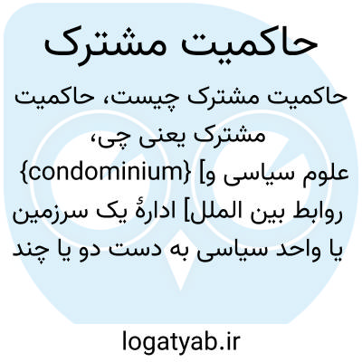 {condominium} [علوم سیاسی و روابط بین الملل] ادارۀ یک سرزمین یا واحد سیاسی به دست دو یا چند دولت به طور مشترک