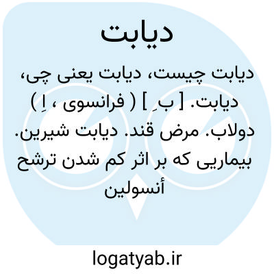 دیابت. [ ب ِ ] ( فرانسوی، اِ ) دولاب. مرض قند. دیابت شیرین. بیماریی که بر اثر کم شدن ترشح أنسولین از سلولهای جزایر لانگرهانس در لوزالمعده بوجود می آید و با زیادی عطش، زیادی ادرار، کم شدن وزن علی رغم اشتهای زیاد و گاهی خارش و جوشهای چرکی پوست همراه است.بیماری قند به عوامل ارثی بستگی دارد. و در صورت وجود زمینه ارثی مساعد، چاقی و حاملگیهای مکرر و عوامل ناشناخته دیگر موجب بروز آن میشوند. وظیفه هورمن انسولین قابل استفاده کردن قند ( گلوکوز ) برای بافتها است و نقصان آن موجب محروم ماندن بافتها از مهمترین منبع ایجاد نیرو و در عین حال تراکم قند در خون و بروز آن در ادرار میشود. بدی تغذیه بافتی در طول زمان سبب تغییرات ثانوی در عروق مخصوصاً در قلب، کلیه، چشم و مغز میشود و همین عوارض بیماری قند را در صورت عدم مراقبت پرخطر مینماید بیماری قند با رژیم غذائی صحیح ( احتراز از زیاده روی در خوردن مواد نشاسته ای ) و تزریق انسولین یا استفاده از خوردن داروهای خوراکی که در بسیاری از اشخاص مسن تر از چهل سال موجب ازدیاد ترشح انسولین از لوزالمعده میشوند قابل درمان است اما این درمان باید همه عمر ادامه یابد زیرا نقصان ترشح انسولین علاج پذیر نیست بیماری قند در صورت عدم مداوا بعلت تراکم مواد اسیدی در بدن موجب اغما و مرگ میشود این خطر مخصوصاً جوانانی را که بمرض قند مبتلی هستند تهدید مینماید. ( از دائرة المعارف فارسی ).