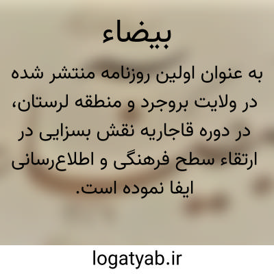 به عنوان اولین روزنامه منتشر شده در ولایت بروجرد و منطقه لرستان، در دوره قاجاریه نقش بسزایی در ارتقاء سطح فرهنگی و اطلاع‌رسانی ایفا نموده است. این نشریه وزین، که انتشار خود را در سال ۱۳۲۷ قمری (معادل ۱۲۸۸ خورشیدی) آغاز کرد، به عنوان یکی از اولین گام‌ها در جهت توسعه مطبوعات در این منطقه شناخته می‌شود. بر اساس مدارک و نسخ موجود، بیضاء با رویکردی فعال، دو شماره در هفته منتشر می‌شده است که نشان از اهتمام موسسان آن به پوشش گسترده‌تر اخبار و مطالب دارد.
