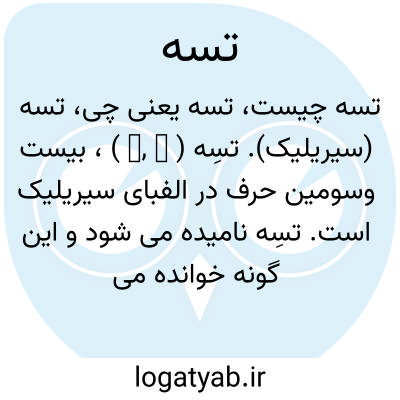 تسه (سیریلیک). تسِه ( Ц, ц )، بیست وسومین حرف در الفبای سیریلیک است. تسِه نامیده می شود و این گونه خوانده می شود: ئتسِه.