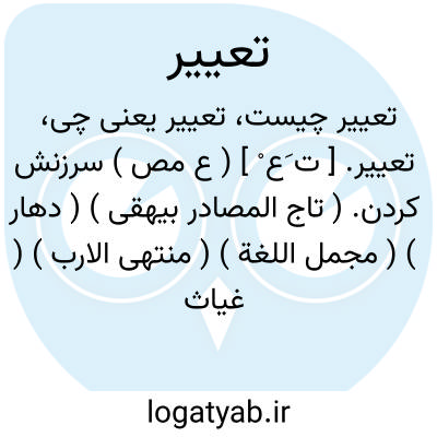 تعییر. [ ت َع ْ ] ( ع مص ) سرزنش کردن. ( تاج المصادر بیهقی ) ( دهار ) ( مجمل اللغة ) ( منتهی الارب ) ( غیاث اللغات ) ( آنندراج ) ( ناظم الاطباء ):