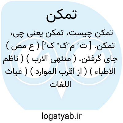 تمکن. [ ت َ م َک ْ ک ُ] ( ع مص ) جای گرفتن. ( منتهی الارب ) ( ناظم الاطباء ) ( از اقرب الموارد ) ( غیاث اللغات ) ( آنندراج ). رجوع به کشاف اصطلاحات الفنون شود. || برپای بودن. ( منتهی الارب ) ( ناظم الاطباء ). قائم شدن. ( غیاث اللغات )( آنندراج ). || گیاه مکنان روئیدن. ( از اقرب الموارد ). || منزلت یافتن نزد پادشاه. ( منتهی الارب ) ( ناظم الاطباء ) ( از اقرب الموارد ): به روزگار وزارت خواجه بزرگ عبدالرزاق دام تمکنه ُ... ( تاریخ بیهقی چ ادیب ص 153 ). || دست یافتن. ( تاج المصادر بیهقی ) ( دهار ) ( مجمل اللغة ). قادر شدن بر چیزی. ( منتهی الارب ) ( ناظم الاطباء ). قادرشدن بر امری و ظفر یافتن بر آن. ( از اقرب الموارد ). || ( ع اِ ) جای گرفتگی و استوار شدگی و منزلت و قدرت و توانایی. ( ناظم الاطباء ): از فرایض احکام جهانداری آن است که به تلافی خللها، پیش از تمکن خصم... مبادرت نموده شود. ( کلیله و دمنه ).