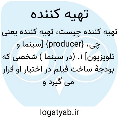{producer} [سینما و تلویزیون] 1. (در سینما ) شخصی که بودجۀ ساخت فیلم در اختیار او قرار می گیرد و مسئولیت هدایت تولید را بر عهده دارد 2. (در تلویزیون ) شخصی که مسئولیت تولید و آماده سازی برنامه ها را برای پخش بر عهده دارد