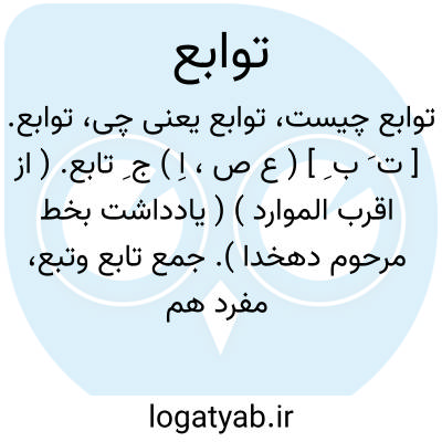 توابع. [ ت َ ب ِ ] ( ع ص، اِ ) ج ِ تابع. ( از اقرب الموارد ) ( یادداشت بخط مرحوم دهخدا ). جمع تابع وتبع، مفرد هم آمده است. ( آنندراج ). ج ِ تابعة. ( ناظم الاطباء ). || ملحقات و لواحق و متع-لقات وهر چیز که پیروی کند چیز دیگری را و نیز لفظی که پیروی لفظ دیگر نماید مانند «حَسَن بَسَن ». ( ناظم الاطباء ). || اسمهایی که اِعراب آنها بر سبیل تبعیت غیر باشد چون صفة، بدل، عطف بیان، عطف بحروف.