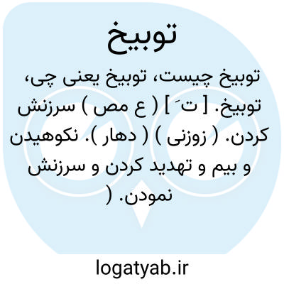 ۱ -( مصدر ) سرزنش کردن نکوهیدن. ۲ - ( اسم ) سرزنش نکوهش. جمع: توبیخات.