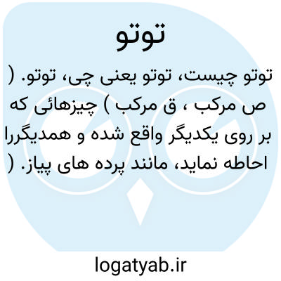 توتو. ( ص مرکب، ق مرکب ) چیزهائی که بر روی یکدیگر واقع شده و همدیگررا احاطه نماید، مانند پرده های پیاز. ( ناظم الاطباء ). پرده پرده. ( یادداشت بخط مرحوم دهخدا ):