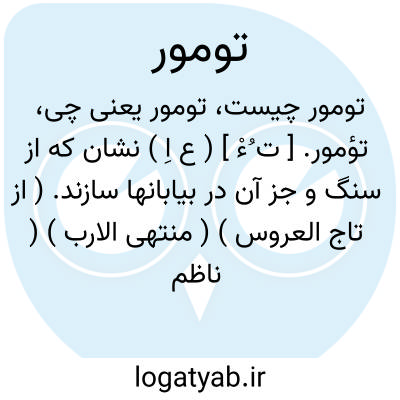 تؤمور. [ ت ُءْ ] ( ع اِ ) نشان که از سنگ و جز آن در بیابانها سازند. ( از تاج العروس ) ( منتهی الارب ) ( ناظم الاطباء ). || کسی: ما بالدار تؤمور؛ ای احدٌ. ( اقرب الموارد ) ( منتهی الارب ) ( ناظم الاطباء ). ج، تآمیر. ( منتهی الارب ) ( ناظم الاطباء ). رجوع به تآمیر شود.