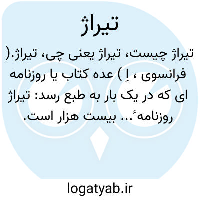 تیراژ.( فرانسوی، اِ ) عده کتاب یا روزنامه ای که در یک بار به طبع رسد: تیراژ روزنامه ٔ... بیست هزار است. ( یادداشت بخط مرحوم دهخدا ).