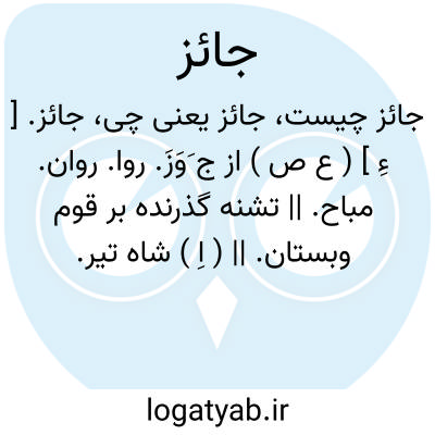 جائز. [ ءِ ] ( ع ص ) از ج َوَزَ. روا. روان. مباح. || تشنه گذرنده بر قوم وبستان. || ( اِ ) شاه تیر. ( منتهی الارب ).