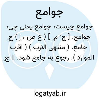 جوامع. [ ج َ م ِ ] ( ع ص، اِ ) ج ِ جامع. ( منتهی الارب ) ( اقرب الموارد ). رجوع به جامع شود. || ج ِ جامعة.( منتهی الارب ) ( اقرب الموارد ). رجوع به جامعه شود.