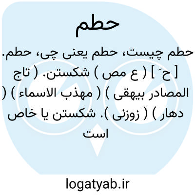 شکستن. وارد مساکن خویش شوید تا شما را سلیمان و لشگریانش در هم نشکنند.(پایمال نکنند). حطام آن است که از خشکی شکسته شود سپس میخشکد و آن را زرد شده میبینی و سپس شکسته و ریز ریز میشود. جهنّم از آن جهت حطمه نامیده شده که هر چیز را میشکند و خورد میکند حتماً به حطمه انداخته می شود. چه دانی حطمه چیست؟ آتش افروخته خداست.