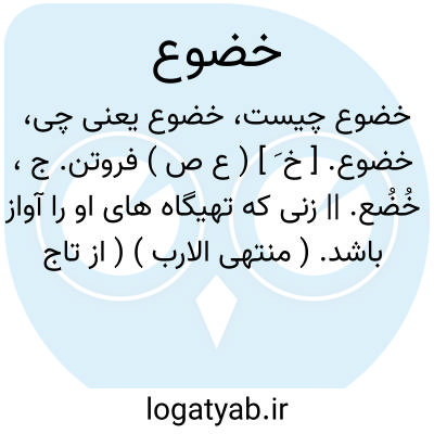 خضوع. [ خ َ ] ( ع ص ) فروتن. ج، خُضُع. || زنی که تهیگاه های او را آواز باشد. ( منتهی الارب ) ( از تاج العروس ) ( از لسان العرب ).