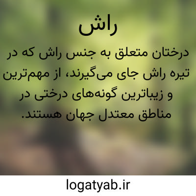 راش. ( اِ ) توده و انبار غله پاک شده را گویند مرادف جاش. ( آنندراج ) ( انجمن آرای ناصری ) ( از فرهنگ رشیدی ). توده و انبار غله.( غیاث اللغات ). توده و انبار غله پاک شده و از کاه برآورده را گویند. ( برهان ) ( از ناظم الاطباء ). انبارغله. چاش نیز گویند. ( شعوری ج 2 ورق 7 ). انبار غله که آن را جاش هم گویند. ( از فرهنگ سروری ) ( فرهنگ خطی ). || درختی است که در جنگلهای ایران موجودمیباشد، چوب آن برای ساختمان منازل دهاقین استعمال میشود. این درخت از 650 تا 2000 گزی در جنگلهای مرطوب آستارا، دیلمان، کلارستان، نور، کجور دیده میشود. ( یادداشت مؤلف ). زان، بشجیر، عیش السیاح، شجرة النَبَع، نبع، شریان، شَوحَط، چِهَلَر، راج، آلاش. ( یادداشت مؤلف ). درخت راش از تیره فاقاسیا و از جنس فاقوس میباشد یک گونه آن فاقوس سیلواتیکا در جنگلهای کرانه دریای مازندران نام برده شده است، این درخت را در گیلان، رامسر، کجور و کلارستق، راش، در آستارا، قزل گز در درفک و طوالش، الوش و آلاش، در نور، چلر، در مازندران، مرس، و در گرگانرود، قزل آغاج می خوانند. درخت راش در جلگه تقریباً نایاب است. ولی در بلندی های کوهستانها فراوان میباشد. در گیلان و مازندران در ارتفاع بیش از دو هزار متر از سطح دریا جنگلهای خالص آن یافت میشود. راش درختی است سایه پسند و از اینرو دارای شاخ و برگ فراوان میباشد. نهال جوان آن از سرمای سخت زود گزند می بیند و بویژه سرمای بهاره برگهای آن را نابود میسازد،گرمای زیاد نیز برای آن زیانبخش است. در نقاط سرد خوب جست نمی دهد ولی در جاهای گرم تا اندازه ای بهتر جست میدهد. توان گفت که درخت راش دارای ریشه های سطحی است و برای جنگلهای خاکهای کم ژرفا و آهکی شایسته میباشد. در جنگلهای انبوه از شصت تا هشتاد سالگی ولی درفضای باز از 40 تا 50 سالگی بار میدهد. در خاکهای خوب هر 5 یا 6 سال یکبار و در آب و هوای ناسزگار هر 15 سال یکبار میوه فراوان میدهد. میوه اش 5 تا 7 درصدروغن دارد. قد آن خیلی بزرگ میشود و به 35 متر و قطر یک متر و نیم میرسد. عمر آن 200 تا 250 سال میباشد. چوب آن برای ساختن در و پنجره و تراورس راه آهن و میز و صندلی و مبل و صندوق و غیره بکار میرود و مصرف آن بیش از دیگر چوبها است. از سلولز آن پارچه های ابریشمی لطیف و خوب میسازند. زغال و هیزم آن نیز پسندیده است. ( از جنگل شناسی ساعی ج 1 ص 164 ). و نیز رجوع به جنگل شناسی ساعی ج 2 صفحات 118، 125، 121، 128 شود.