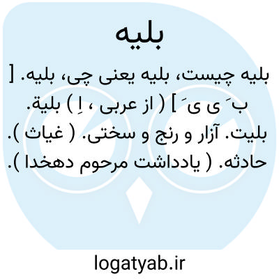 بلیه. [ ب َ ی ی َ ] ( از عربی، اِ ) بلیة. بلیت. آزار و رنج و سختی. ( غیاث ). حادثه. ( یادداشت مرحوم دهخدا ). خزیة. کِرزیم. ( منتهی الارب ). رجوع به بلیت و بلیة و بلوی شود: داناست به مصالح جمع ساختن پراکندگی و عاقبت کار و ساکن ساختن و فرونشاندن بلیه دشوار. ( تاریخ بیهقی ص 315 ). برابری می کند با بلیه الم رسان با صبر بسیاری که خدا به او داده است. ( تاریخ بیهقی ص 308 ). آنچنان حسبتی که آثار بلیه را نابود کرده اند. ( تاریخ بیهقی ص 309 ).