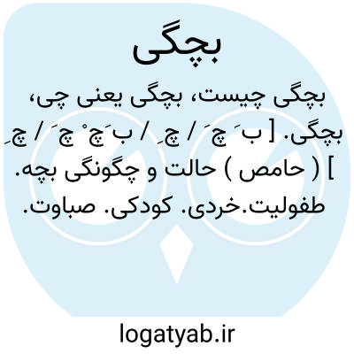 بچگی. [ ب َ چ َ / چ ِ / ب َچ ْ چ َ / چ ِ ] ( حامص ) حالت و چگونگی بچه. طفولیت.خردی. کودکی. صباوت. صبا. خردسالی. صغر. || ( ص نسبی ) منسوب و متعلق به بچه. ( ناظم الاطباء ).