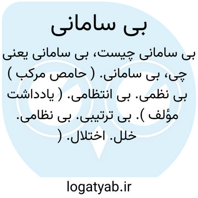 بی سامانی. ( حامص مرکب ) بی نظمی. بی انتظامی. ( یادداشت مؤلف ). بی ترتیبی. بی نظامی. خلل. اختلال. ( یادداشت مؤلف ). || بی معیشتی. درویشی و مفلسی. ( ناظم الاطباء ). بی ساز وبرگی. || بی خانمانی. دربدری: