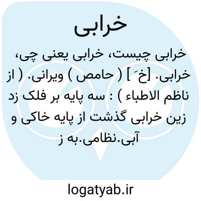۱ - ویرانی مقابل آبادی. ۲ - تباهی فساد. ۳ - مستی و بیخودی. ۴ - زیان ضرر.