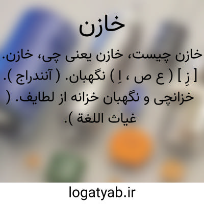 ذخیره کننده و حفظکننده مال ذخیره.( فرهنگ نظام ). خزانه دار و تحویلدار و حافظ و نگهبان خزانه. ( فرهنگ نفیسی ). گَنجور، گنجبان. خزانه دار. مُدَّخِر، متولی حفظ مال و انفاق. ( اقرب الموارد ) ( المنجد ). ج: خُزّان و خَزَنَه، خازنان: ما انتم له بخازنین. ( قرآن 22/15 ). لخزنة جهنم ادعوا ربکم. ( قرآن 49/40 ) و قال لهم خزنتها ( 71/39 و 73 ) سألهم خزنتها الم یأتکم ( 8/67 ).