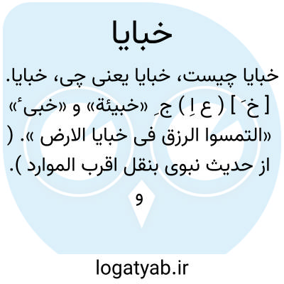 خبایا. [ خ َ ] ( ع اِ ) ج ِ «خبیئة» و «خبی ٔ» «التمسوا الرزق فی خبایا الارض ». ( از حدیث نبوی بنقل اقرب الموارد ). و خفایای آن ماجری و خبایای آن حادثه محقق شد. ( سندبادنامه ص 86 ). پسر را از بهر تجدید وصیت و تمکین از خبایای ودیعت پیش خواند. ( از ترجمه تاریخ یمینی چ 1 تهران ص 203 ).