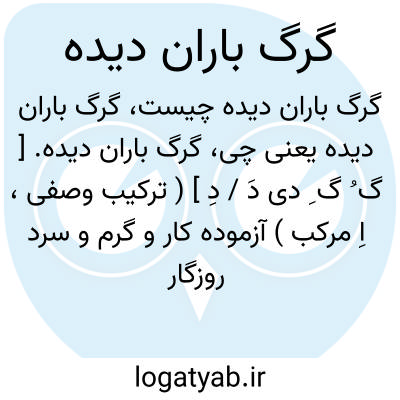 گرگ باران دیده. [ گ ُ گ ِ دی دَ / دِ ] ( ترکیب وصفی، اِ مرکب ) آزموده کار و گرم و سرد روزگار دیده. ( غیاث اللغات ). ظاهر آن است که گرگ بچه از باران میترسد و در وقت باران از سوراخ خود برنمی آید هرچند گرسنه و تشنه باشد اما چون گرگی بیرون خانه خود باشد و از اتفاقات او را باران درگیرد و ببیند از او آفتی و ضرری نمیرسد، بار دیگر دلیر می شود و از باران خائف نمیگردد، و این کنایه از مردم آزموده کار و گرم و سرد عالم چشیده است و در محل ذم مستعمل است: