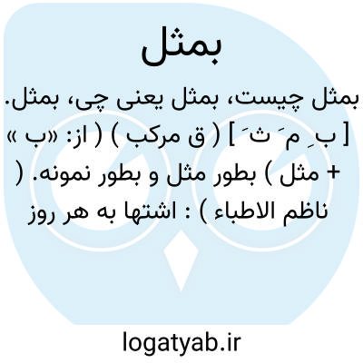 بمثل. [ ب ِ م َ ث َ ] ( ق مرکب ) ( از: «ب » + مثل ) بطور مثل و بطور نمونه. ( ناظم الاطباء ): اشتها به هر روز زیادت بود. چنان که اگر بمثل شیرمرغ خواستی دروقت حاضر کردی. ( تاریخ بیهقی چ ادیب ص 411 ).