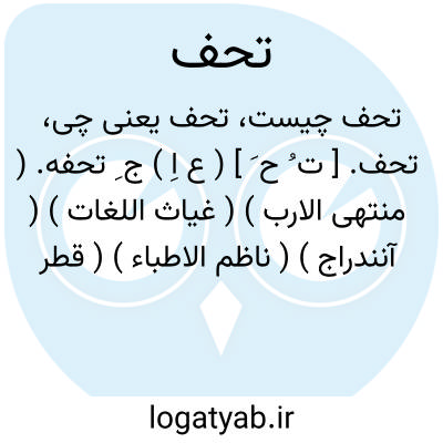 تحف. [ ت ُ ح َ ] ( ع اِ ) ج ِ تحفه. ( منتهی الارب ) ( غیاث اللغات ) ( آنندراج ) ( ناظم الاطباء ) ( قطر المحیط ) ( اقرب الموارد ) ( فرهنگ نظام ): حتی یتلقا الملائکة مبشرة بالغفران و موصلة الیه کرائم التحف و الرضوان. ( تاریخ بیهقی چ ادیب ص 301 ).