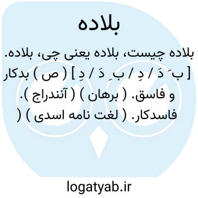 بلاده. [ ب َ دَ / دِ / ب ِ دَ / دِ ] ( ص ) بدکار و فاسق. ( برهان ) ( آنندراج ). فاسدکار. ( لغت نامه اسدی ) ( صحاح الفرس ) ( شرفنامه منیری ):