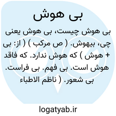 بیهوش. ( ص مرکب ) ( از: بی + هوش ) که هوش ندارد. که فاقد هوش است. بی فهم. بی فراست. بی شعور. ( ناظم الاطباء ). کندفهم. مقابل باهوش. خِنگ. دیرفهم. کندذهن. بی ذکاوت. بی حافظه. کم فراست. ( یادداشت مؤلف ):ضعضع؛ مرد بی رای و هوش. ( منتهی الارب ):