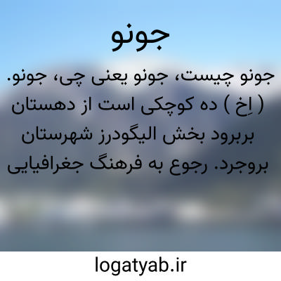 جونو. ( اِخ ) ده کوچکی است از دهستان بربرود بخش الیگودرز شهرستان بروجرد. رجوع به فرهنگ جغرافیایی ایران ج 6 شود.