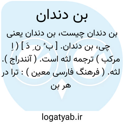 بن دندان. [ ب ُ ن ِ دَ ] ( اِ مرکب ) ترجمه لثه است. ( آنندراج ). لثه. ( فرهنگ فارسی معین ):