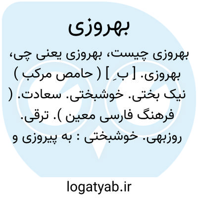 بهروزی. [ ب ِ ] ( حامص مرکب ) نیک بختی. خوشبختی. سعادت. ( فرهنگ فارسی معین ). ترقی. روزبهی. خوشبختی: