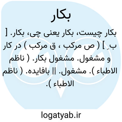 بکار. [ ب ِ ] ( ص مرکب، ق مرکب ) در کار و مشغول. مشغول بکار. ( ناظم الاطباء ). مشغول. || بافایده. ( ناظم الاطباء ). مفید. محتاج الیه. لازم. ضروری. ( یادداشت مؤلف ):