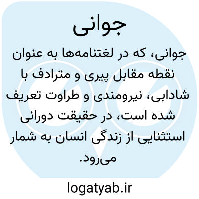 جوانی. [ ج َ ] ( حامص ) ضد پیری. شباب. حداثت. ( دهار ):