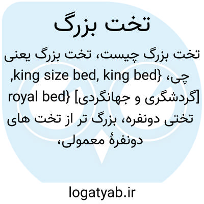 {king size bed, king bed, royal bed} [گردشگری و جهانگردی] تختی دونفره، بزرگ تر از تخت های دونفرۀ معمولی، با ابعاد تقریبی 190 × 200 سانتی متر