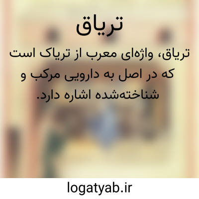 یونانی معرب و بمعنی مطلق فادزهر شهرت دارد. معجونی مرکب از داروهای مسکن و مخدر که به عنوان ضددردها و سموم به کار می‌رفته و در ترکيبش عصاره‌های گیاهان خانواده شقایق و خشخاش به کار می‌رفته است، تریاق فاروق، تریاق کبیر. پادزهر. فادزهر. پازهر.