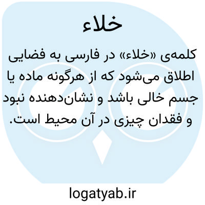 کلمه‌ی «خلاء» در فارسی به فضایی اطلاق می‌شود که از هرگونه ماده یا جسم خالی باشد و نشان‌دهنده نبود و فقدان چیزی در آن محیط است. این واژه ریشه در زبان عربی دارد و مفهوم تهی بودن یا فقدان را در خود جای داده است، به طوری که می‌تواند به نبود هوا، گاز یا هر نوع ماده‌ی فیزیکی اشاره کند. در علم فیزیک، خلاء محیطی است که فشار بسیار کمی دارد و ذرات ماده در آن تقریباً وجود ندارند، مانند فضای میان ستارگان یا دستگاه‌های آزمایشگاهی ویژه. علاوه بر کاربرد علمی، این واژه‌ در متون ادبی و اجتماعی نیز برای بیان کمبود، فقدان یا نبود چیزی مهم به کار می‌رود و حس خالی بودن و جای خالی را منتقل می‌کند و نشان‌دهنده شرایطی است که نقص یا فقدانی محسوس در آن وجود دارد. به طور کلی، «خلاء» هم به معنای فیزیکی فضای تهی و هم به معنای استعاری فقدان یا کمبود چیزی مورد استفاده قرار می‌گیرد و در ادبیات، علوم و مکالمات روزمره کاربرد گسترده‌ای دارد. این واژه با مفاهیمی مانند تهی بودن، نبود، فقدان و خالی بودن هم‌معنی است.