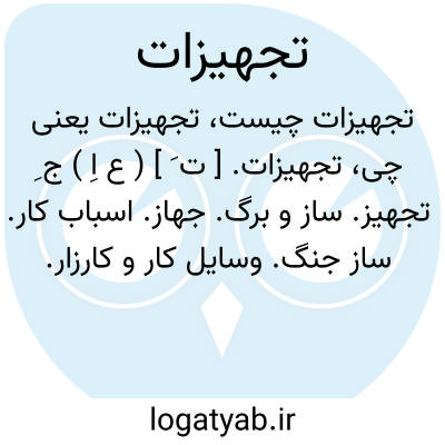 تجهیزات. [ ت َ ] ( ع اِ ) ج ِ تجهیز. ساز و برگ. جهاز. اسباب کار. ساز جنگ. وسایل کار و کارزار.