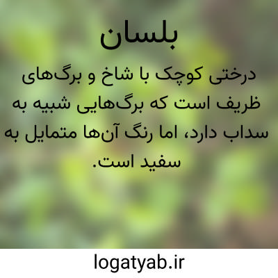 ( اسم ) ۱- گیاهی از تیر. سدابیان که بصورت درختچه است و دارای گلهای سفید می باشد. هم. اعضای این گیاه محتوی ماد. صمغی میباشند که در صورت خراش یا نیش حشرات این ماد. صمغی از آن خارج میشود درخت بلسان ابوشام بشام بلسم مکه درخت بلسان مکی بلسم اسرائیل مکه بلسن مکی بلسم اسرائیل مکه بلسن آغاجی بلسان آغاجی بلسان مکی شجره البلسم. توضیح دان. این گیاه را حب البلسان نیز گویند و بنام تخم بلسان تخم بلسان در تداوی مصرف میشود. ۲- بلسان نام عام هم. گیاهانی است که از آنها صمغ استخراج میشود. یا بلسان مکی. بلسان