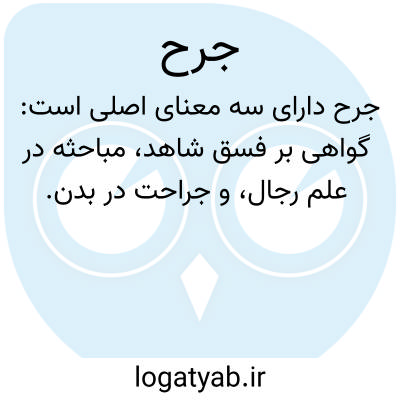 [ویکی فقه] جرح دارای سه معنای گواهی بر فسق شاهد، بحثی رجالی و جراحت در بدن می باشد که از جرح به معنای نخست در باب قضاء و به مناسبت در باب تجارت سخن رفته است و به معنای دوم در علم رجال بحث شده است.