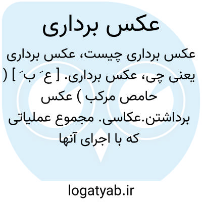 عکس برداشتن عکاسی مجموع عملیاتی که به اجرای آنها تصور شئ مورد نظر بروی صفحه ای ثابت می گردد. توضیح اشعه نورانی صادر از شئ به وسیله عدسی دستگاه عکس برداری بداخل جعبه تاریک دستگاه نفوذ می کند و صفحه حساس را متاثر می سازد و تغییراتی در وضع شیمیایی و فیزیکی ماده حساس پدید می آورد. این صفحه به تاریک خانه یعنی محلی که با نور قرمز روشن می شود برده شده در آن جا با مواد شیمیایی مخصوص عکس تصویر شئ مورد نظر ظاهر و ثابت می گردد. سپس این عکس را بروی صفحه حساس کاغذی انتقال داده تصویر حقیقی شئ بروی آن چاپ می شود. یا دستگاه عکس بردار. دور بین عکاسی. ۲ - برداشتن تصویر از اعضا و جوارح انسان به وسیله دستگاه رادیوگراف.